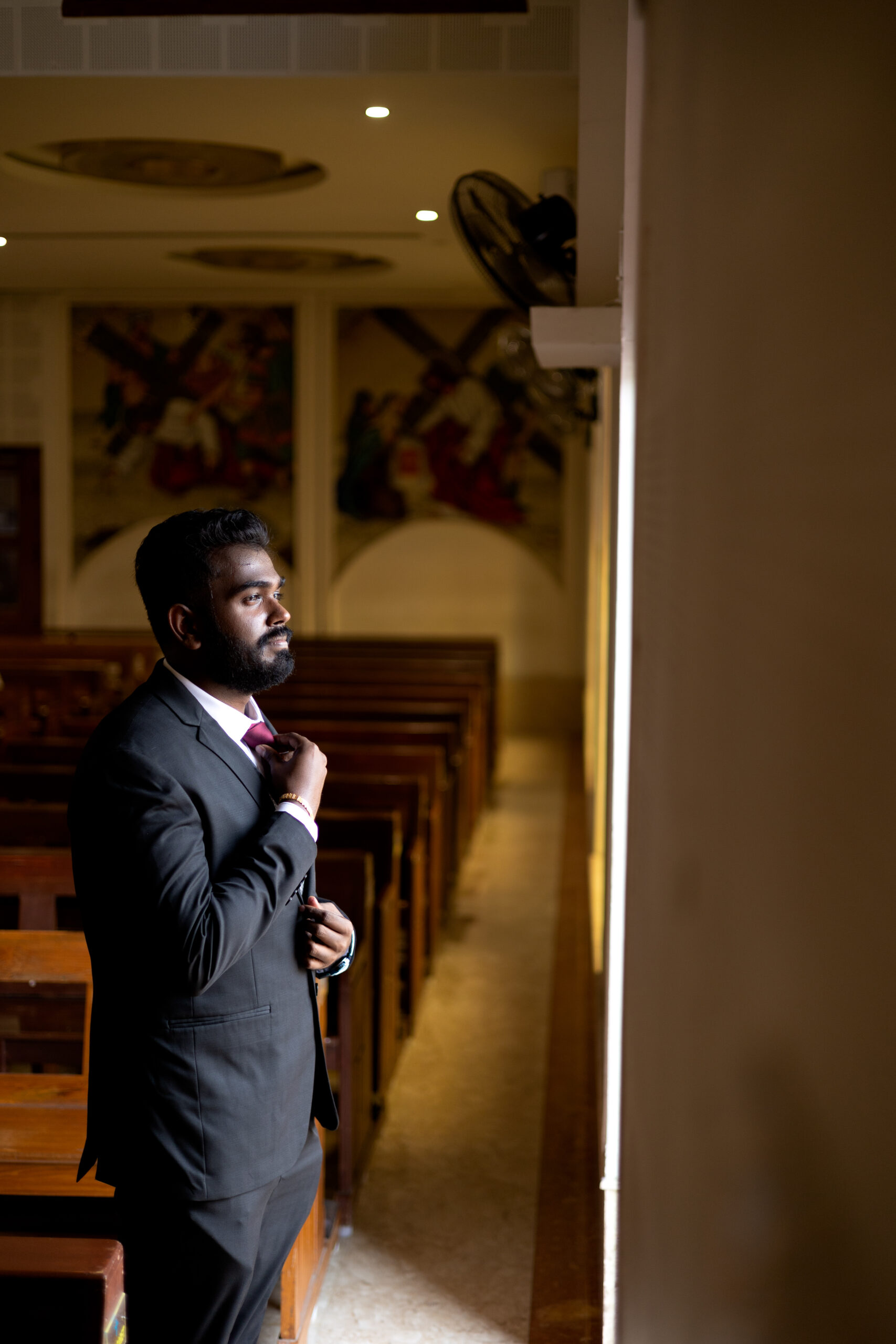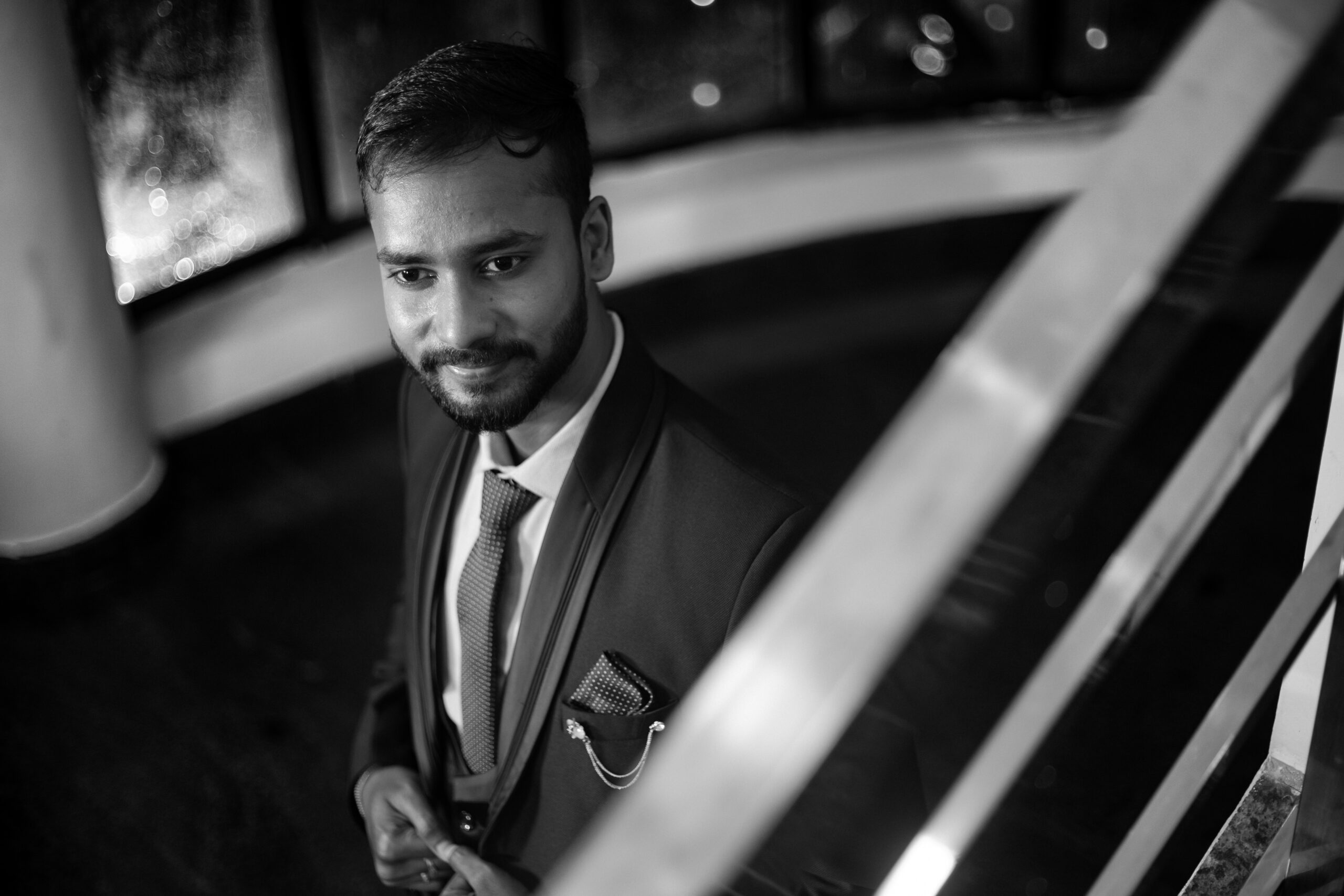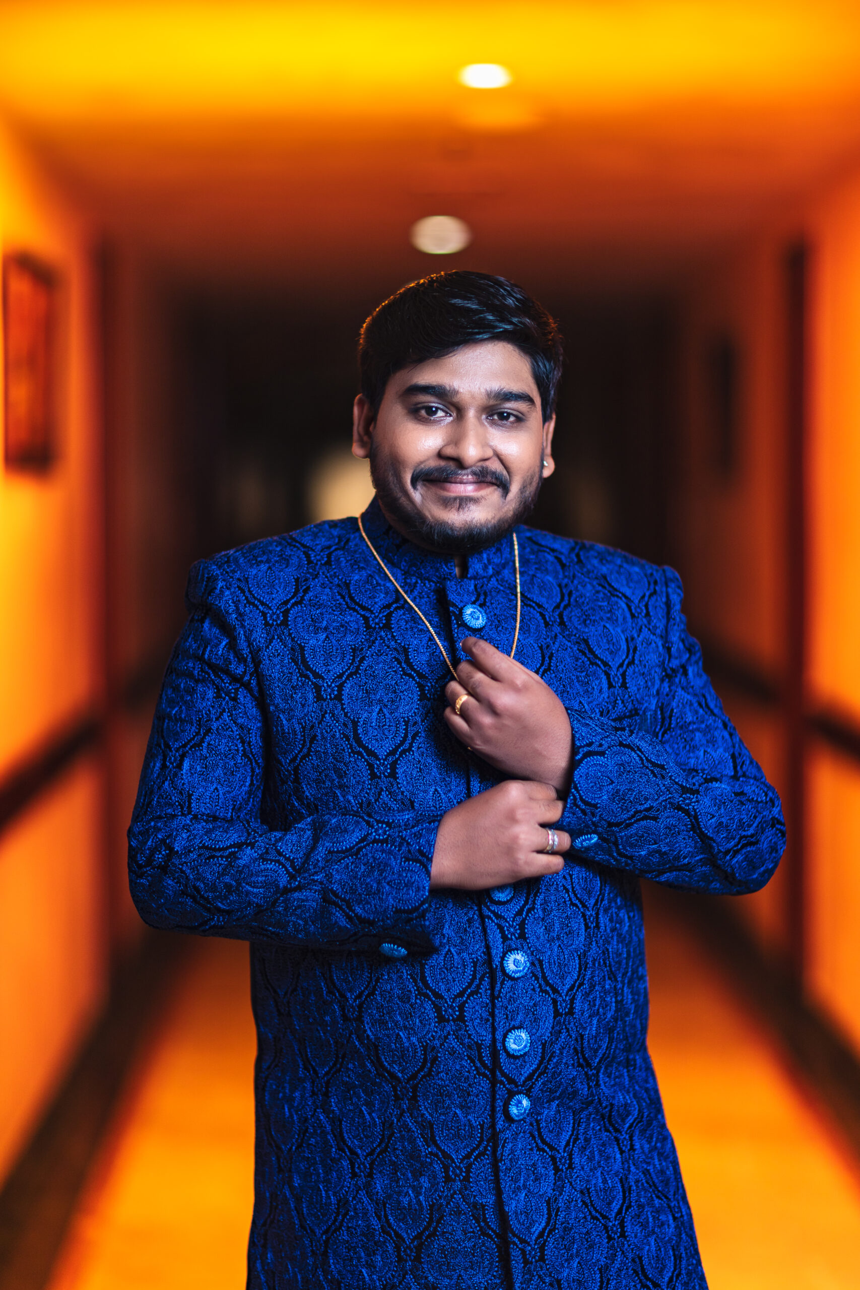 Strength in stance, story in his eyes — we frame every groom like a king.